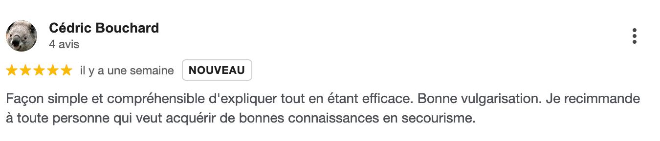 « En moins de 30 minutes, j’ai appris tellement de compétences utiles. Ça m’a rappelé les étapes clés de la RCR et des manœuvres en cas d’étouffement, et ça m’a donné la confiance nécessaire pour agir rapidement en situation d’urgence. »